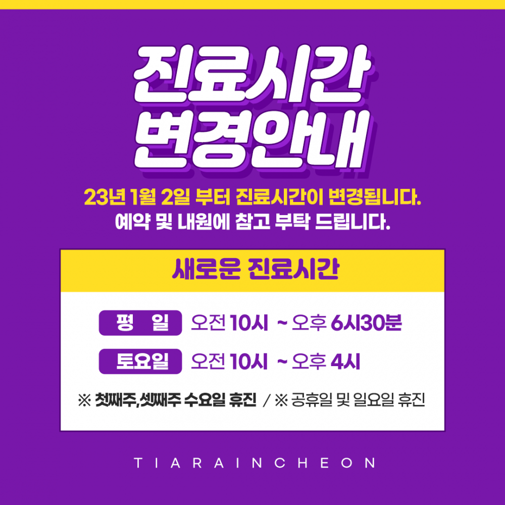 인천티아라 진료시간 변경 안내드립니다.