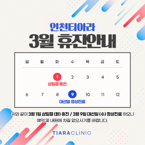 인천티아라 3월 휴진 안내드립니다.