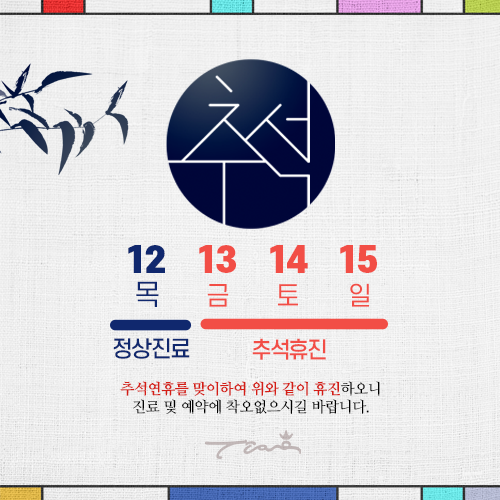 추석연휴를 맞이하여 다음과 같이 휴무하오니