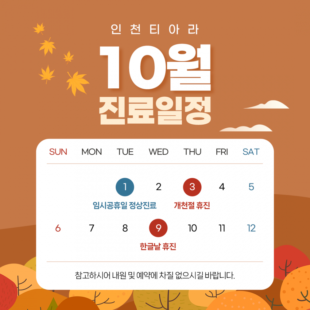 인천 티아라 10월 진료일정 안내
