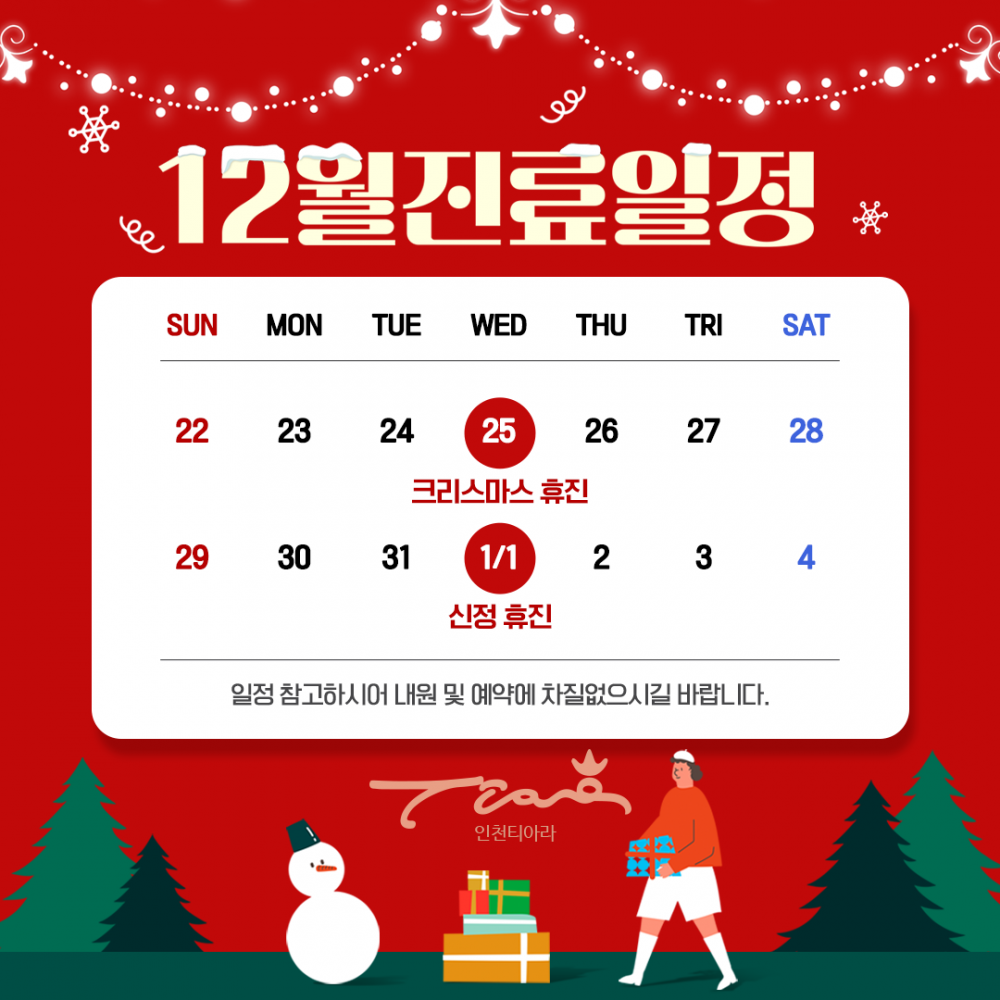 인천 티아라 12월 진료일정 안내